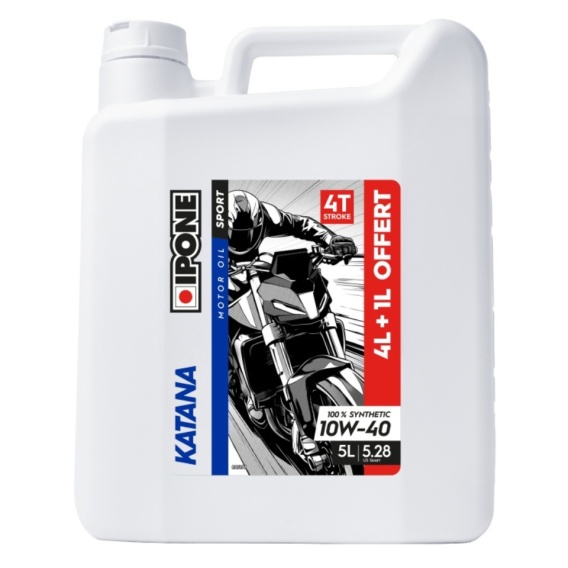 IPONE KATANA 10W-40 - 100% syntetyczny olej silnikowy zalecany do 4-suwowych motocykli szosowych i terenowych używanych codziennie w trudnych warunkach. Zawarte dodatki zapewniają doskonałą ochronę silnika i skrzyni biegów. Doskonale sprawdza się w nowoczesnych silnikach również z hydrauliczną regulacją zaworów i z hydraulicznym napinaczem łańcucha rozrządu. Zachowuje bardzo dobre właściwości nawet w ekstremalnych warunkach.