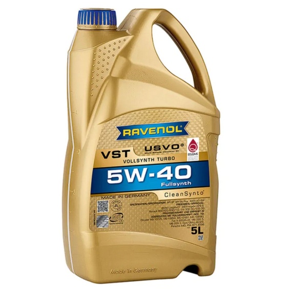 RAVENOL VollSynth Turbo VST SAE 5W-40 to oparty na PAO (polialfaolefiny), w pełni syntetyczny olej silnikowy wykonany w technologii USVO® i sprawdzonej technologii CleanSynto® do silników benzynowych i Diesla, również z turbodoładowaniem i bezpośrednim wtryskiem paliwa. Dzięki technologii USVO® osiągnięto wyjątkowo wysoką stabilność lepkości. Wyeliminowano wady polimerów podnoszących indeks lepkości, jednocześnie wykorzystując ich zalety. Zwiększyło to ochronę silnika, jego osiągi oraz czystość w okresach między wymianami oleju. Technologia USVO® sprawia, że produkt nie wykazuje żadnych strat ścinania podczas całego okresu między wymianami i jest wyjątkowo stabilny dla procesów utleniania. Wykorzystuje pozytywne właściwości wolframu, aby wygładzić strukturę powierzchni silnika, zmniejszając tarcie i zużycie oraz znacznie poprawiając wydajność mechaniczną. Zapewnia doskonałe właściwości rozruchu zimnego silnika oraz pozwala na wydłużone okresy między wymianami oleju zgodnie z zaleceniami producenta. Gwarantuje bezpieczeństwo pracy w każdych warunkach na drodze np. podróż w długich korkach (ciągłe zatrzymywanie i ruszanie) oraz podczas szybkiej jazdy na autostradzie.